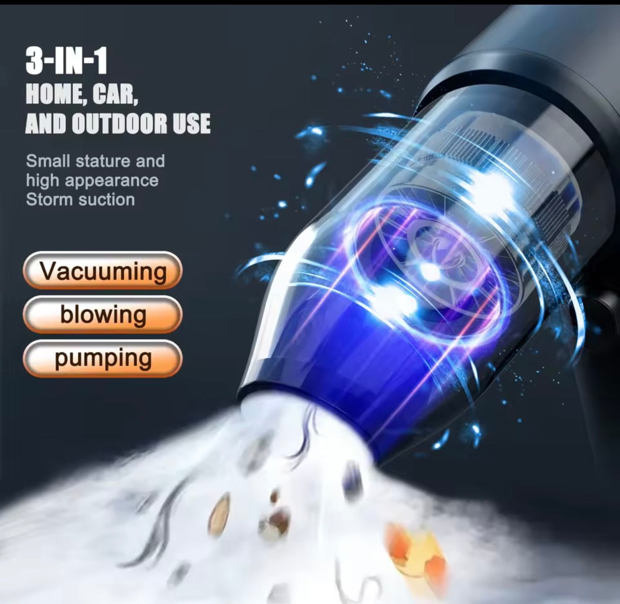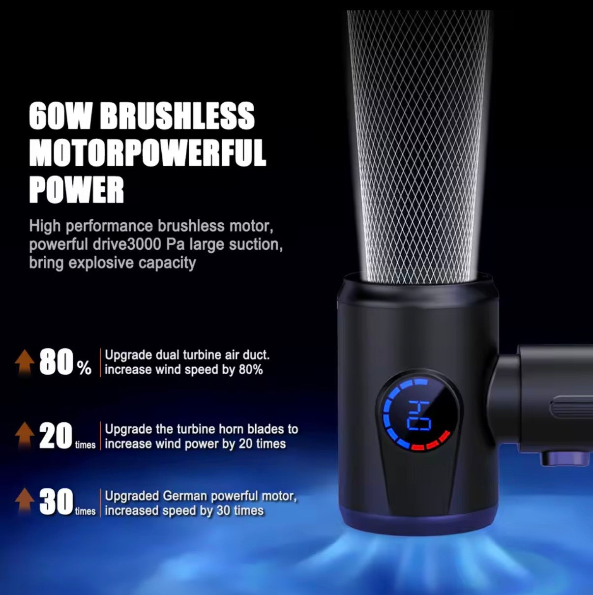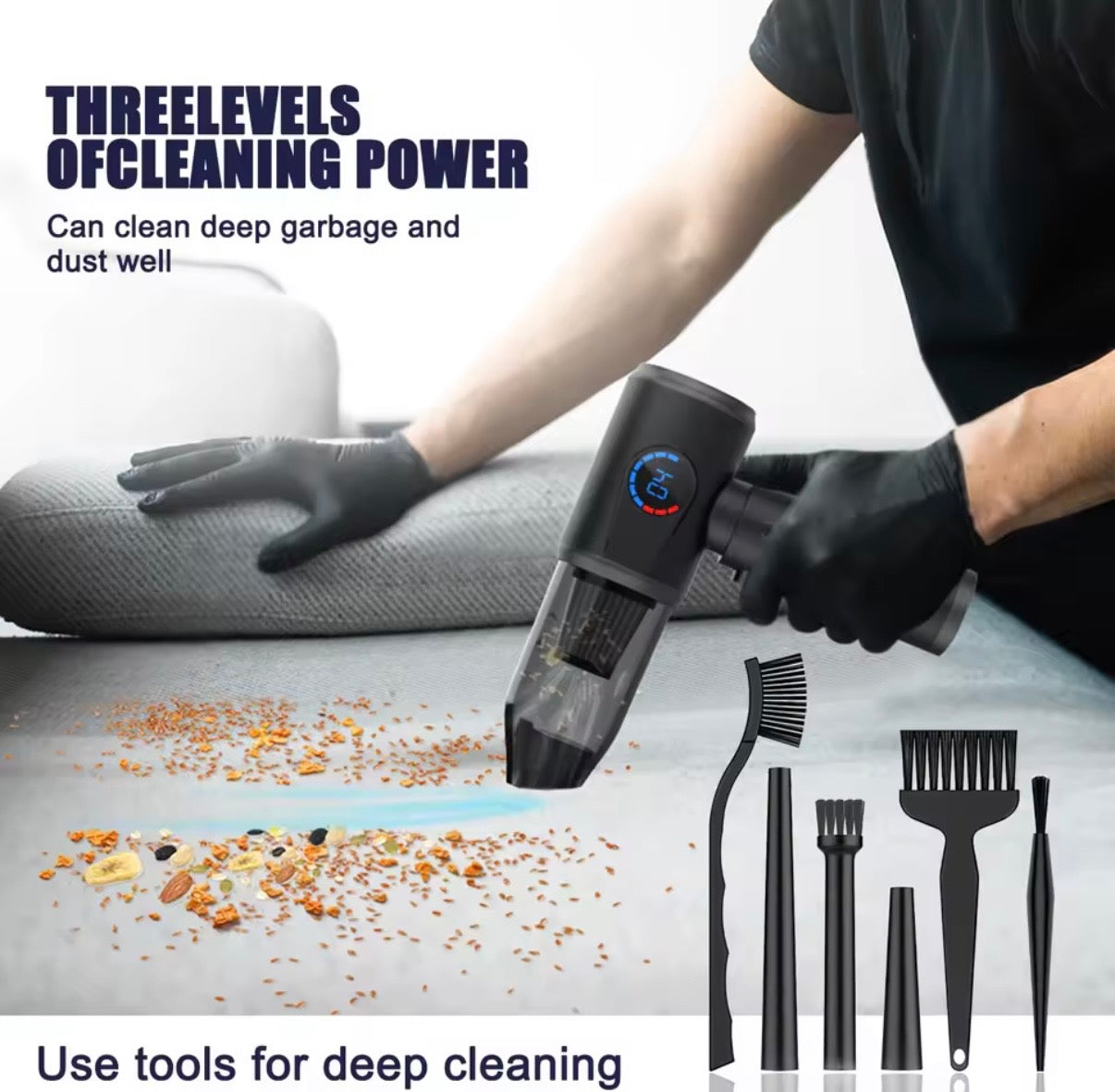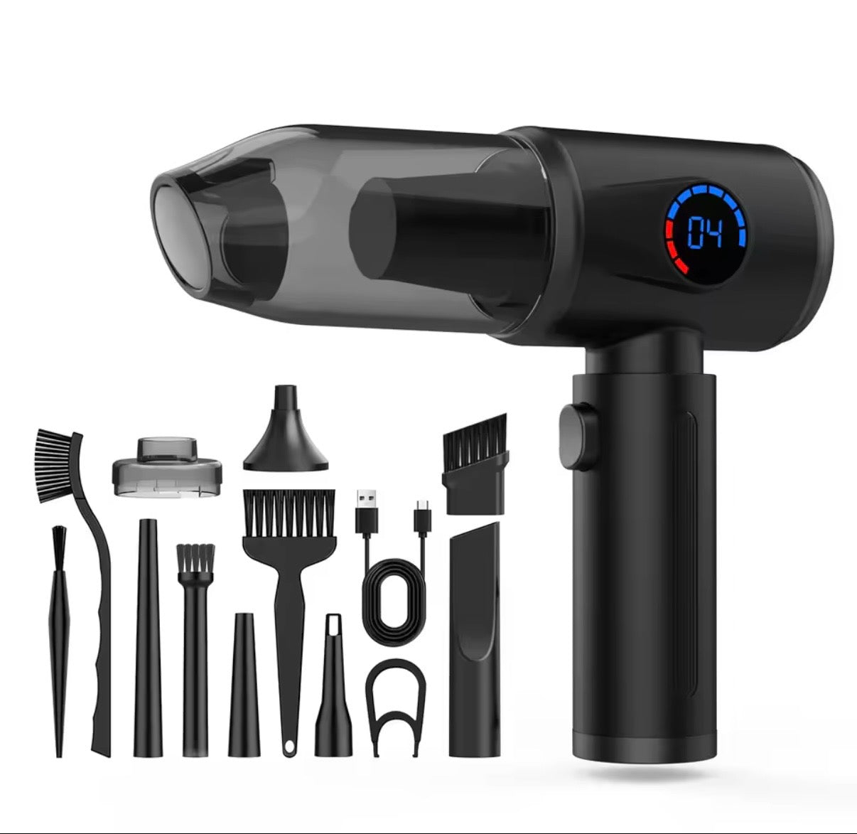 Trådlös handhållen dammsugare med 4 hastigheter, kraftfull tryckluftspistol med LED-ljud, rengöringsverktyg för camping, bil, hemmabruk